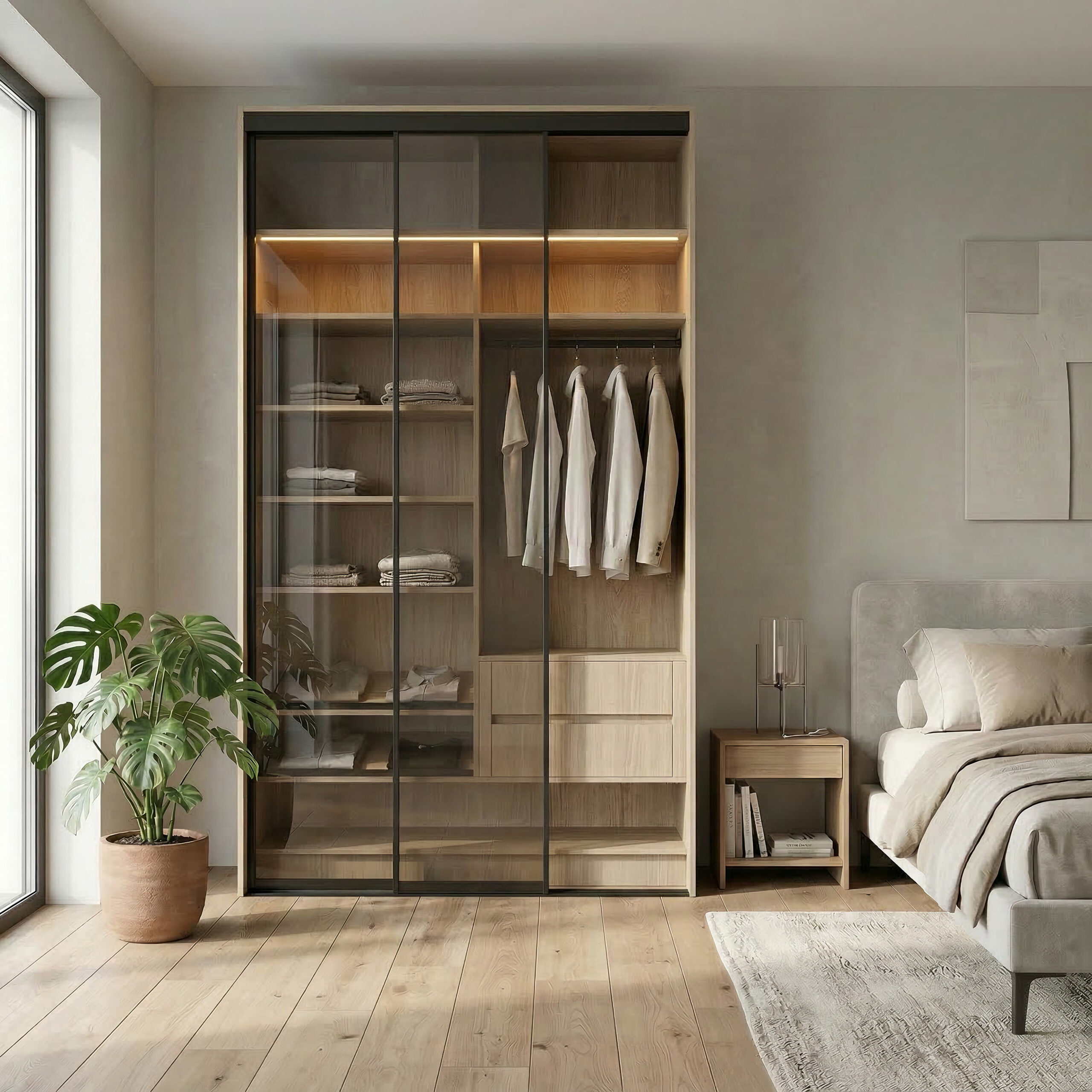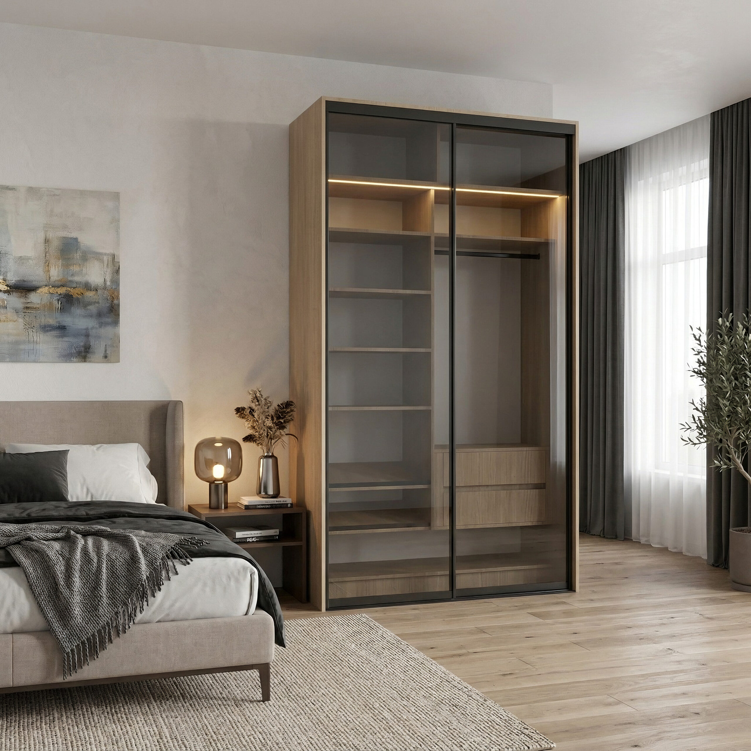 اكتشف مستوى جديد من الأناقة والتنظيم مع خزانة الملابس المنزلقة من الخزائن الأمثل بعرض 143.6 سم، حيث يجتمع التصميم العصري مع الحلول الذكية لتنظيم الملابس بطريقة تمنح غرفتك مظهراً أكثر ترتيباً وفخامة. تتميز الخزانة بأبواب منزلقة بإطار أنيق تضيف لمسة عصرية راقية، وتمنحك سهولة في الاستخدام مع حركة انسيابية توفر المساحة داخل الغرفة.