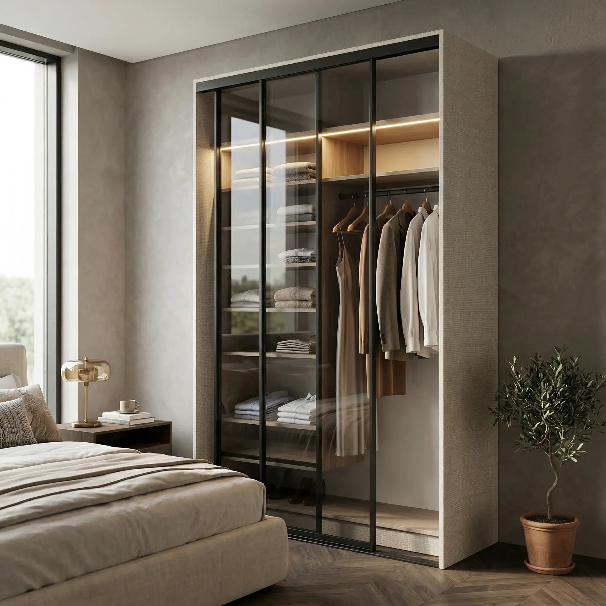 يعتمد هذا التصميم من دواليب الخزائن الأمثل على توزيع ذكي للمساحات الداخلية، مما يمنح المستخدم مرونة في تنظيم الملابس بحسب الاحتياج اليومي، مع الحفاظ على مظهر مرتب وسهولة الوصول إلى جميع محتويات الخزانة.