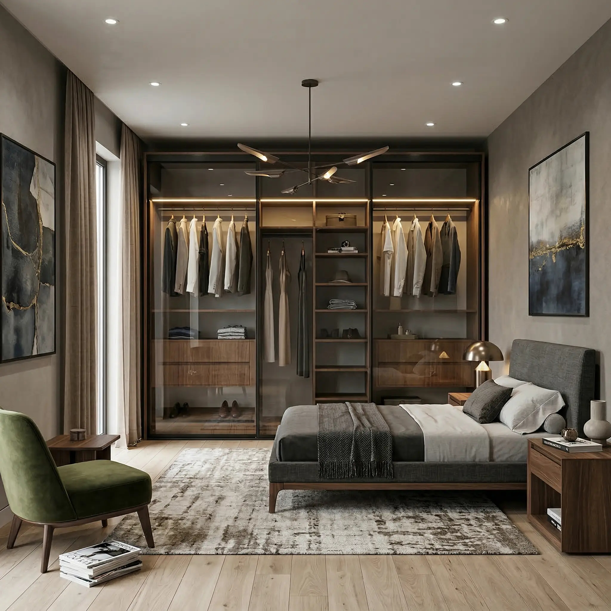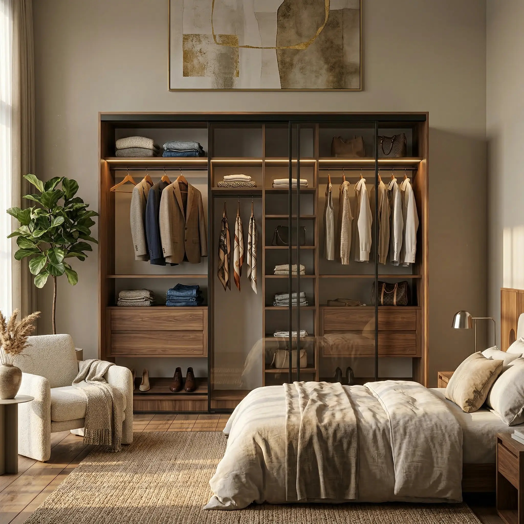 خزانة ملابس عرض 281,6 سم بأبواب سحاب زجاجية أو خشبية – نظام تنظيم متكامل