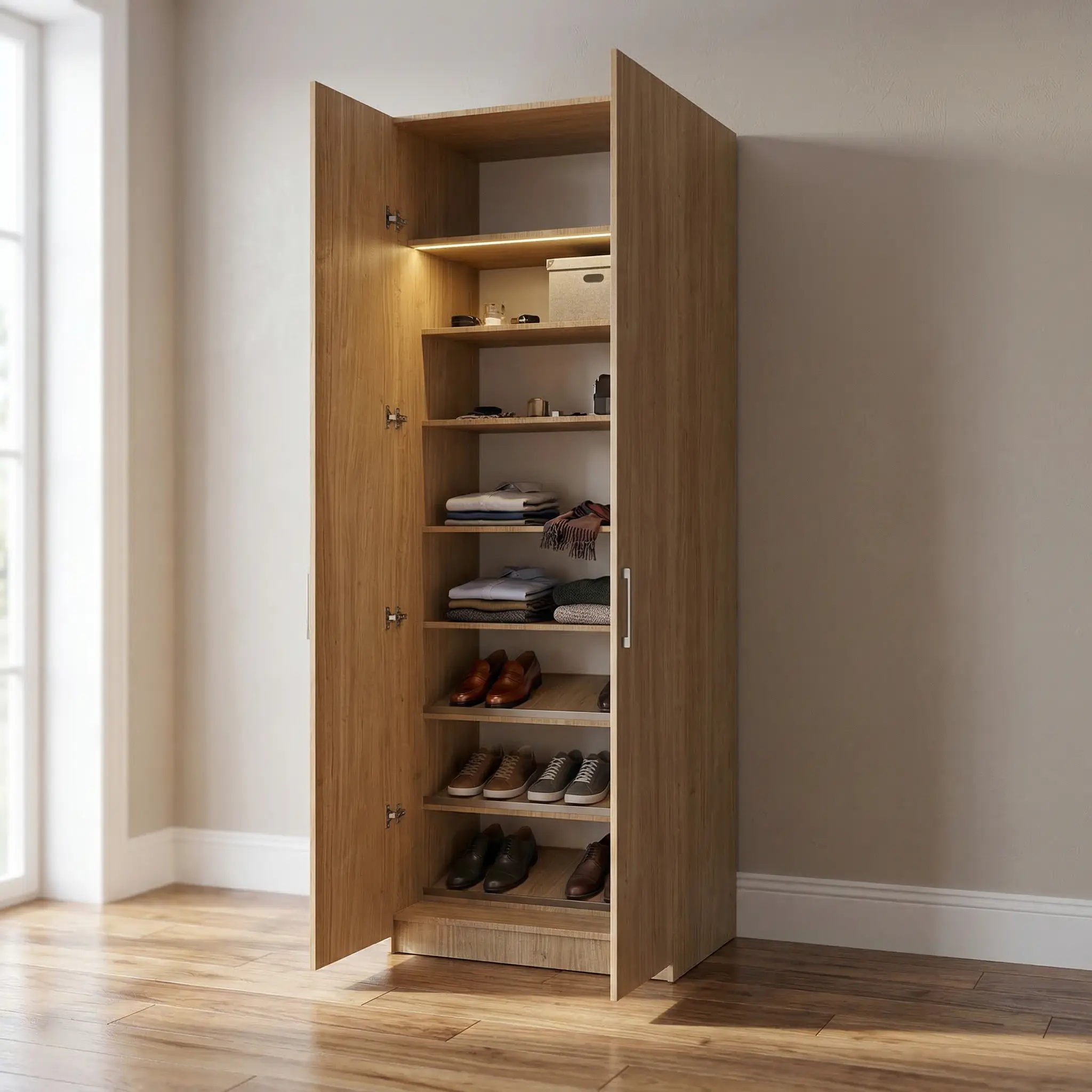 تعد هذه الخزانة خيارًا عمليًا لمن يبحث عن تنظيم مثالي ومساحة تخزين مرنة.